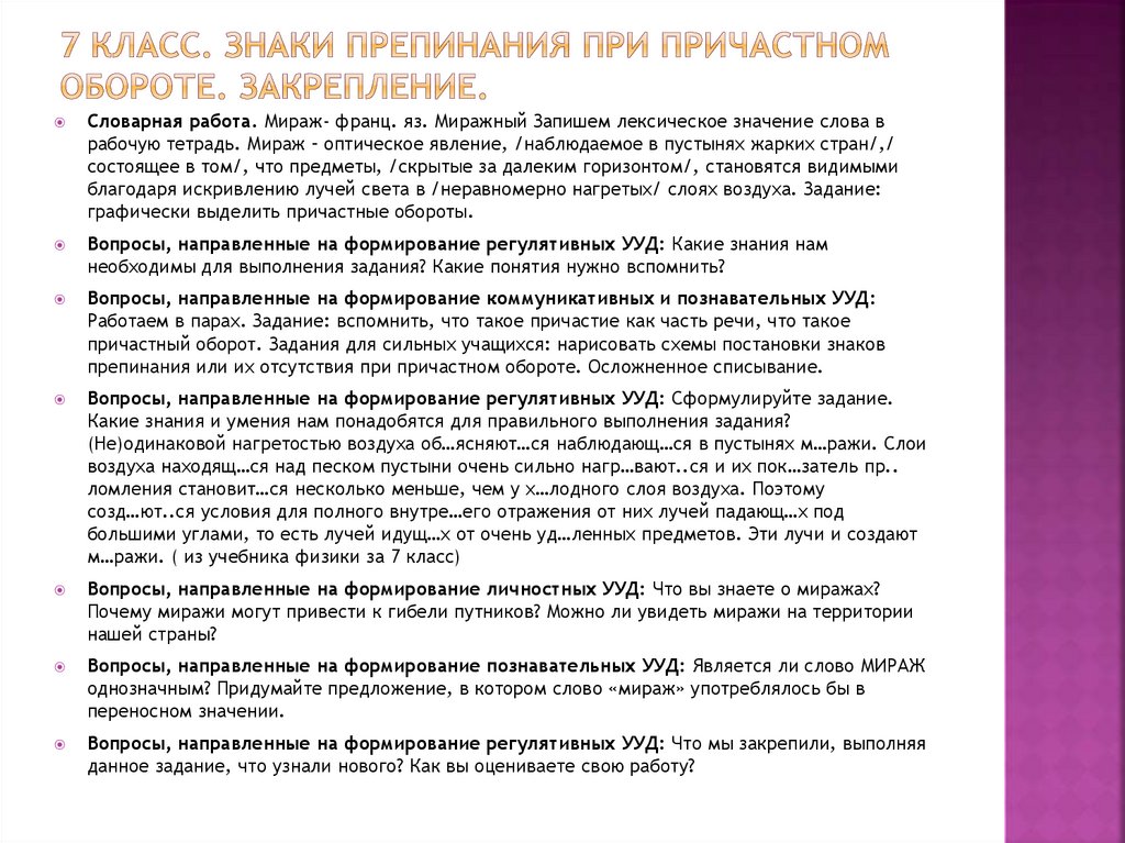 Вопросы, направленные на формирование личностных УУД: Что вы знаете о миражах?