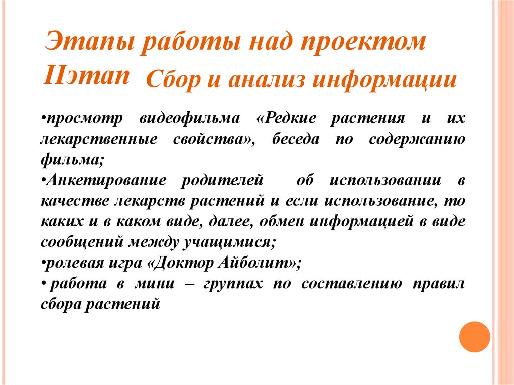 Этапы работы над проектомIIэтап Сбор и анализ информации