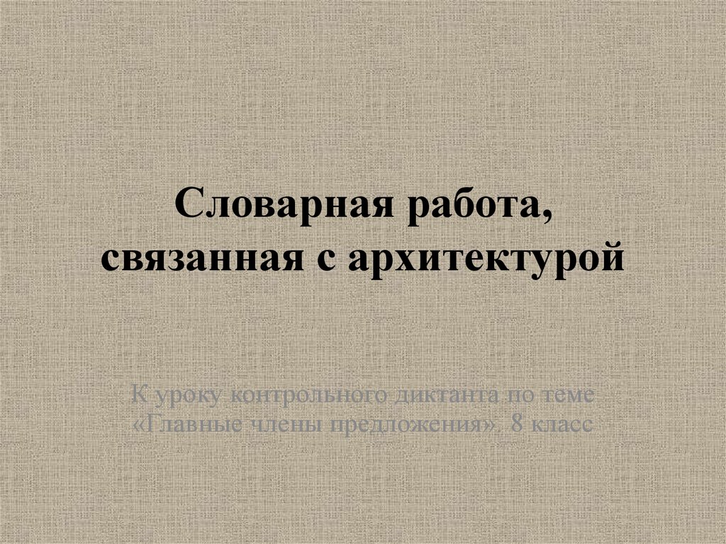 Главные члены предложения. Словарная работа, связанная с архитектурой
