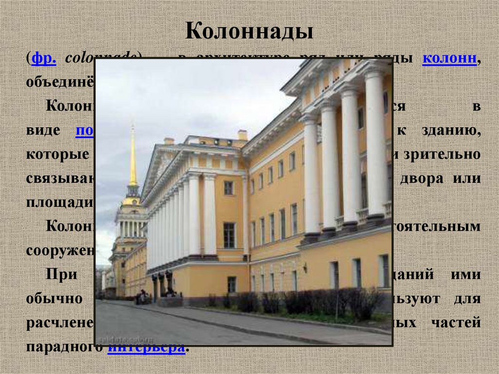 Колоннады(фр. colonnade) — в архитектуре ряд или ряды колонн,