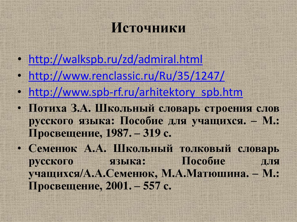 Источники• http://walkspb.ru/zd/admiral.html