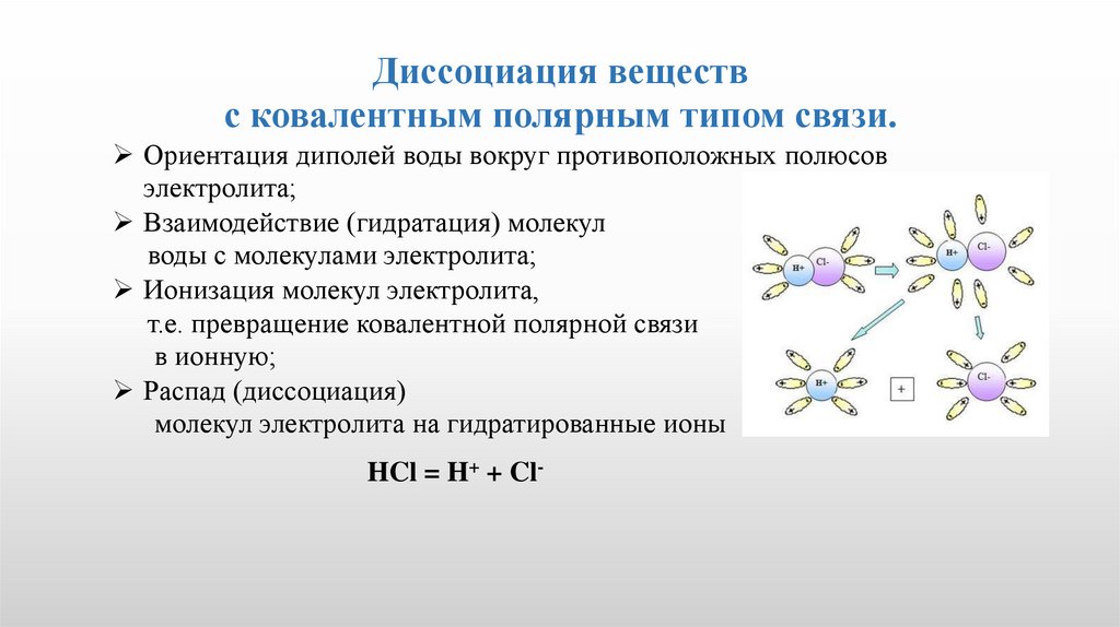 Диссоциация веществс ковалентным полярным типом связи.
