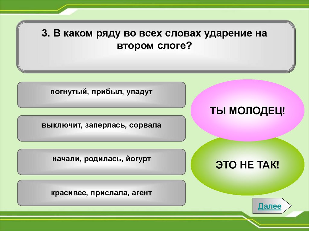 Правильность постановки ударения. Подготовка к ЕГЭ. Тренажёр по орфоэпии (задание 04)