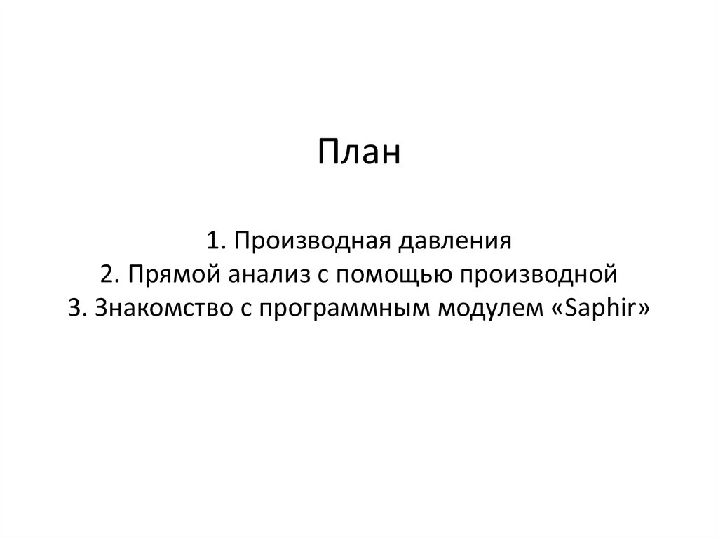 1. План 1. Производная давления 2. Прямой анализ с помощью производной 3. Знакомство с программным модулем «Saphir»