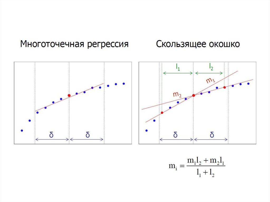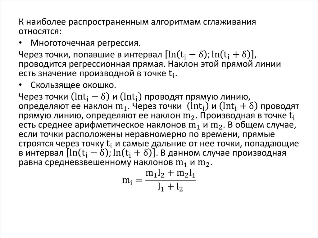 прямую линию, определяют ее наклон m2 . Производная в точке t i