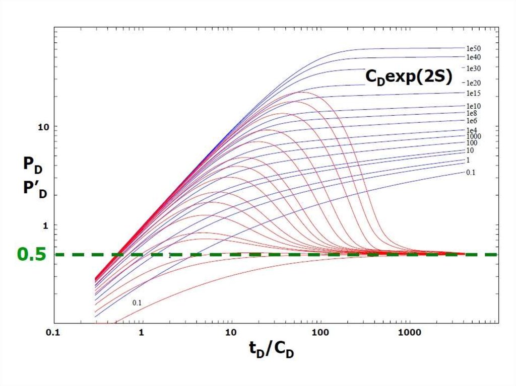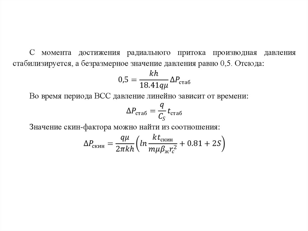 С момента достижения радиального притока производная давлениястабилизируется, а безразмерное значение давления равно 0,5. Отсюда: