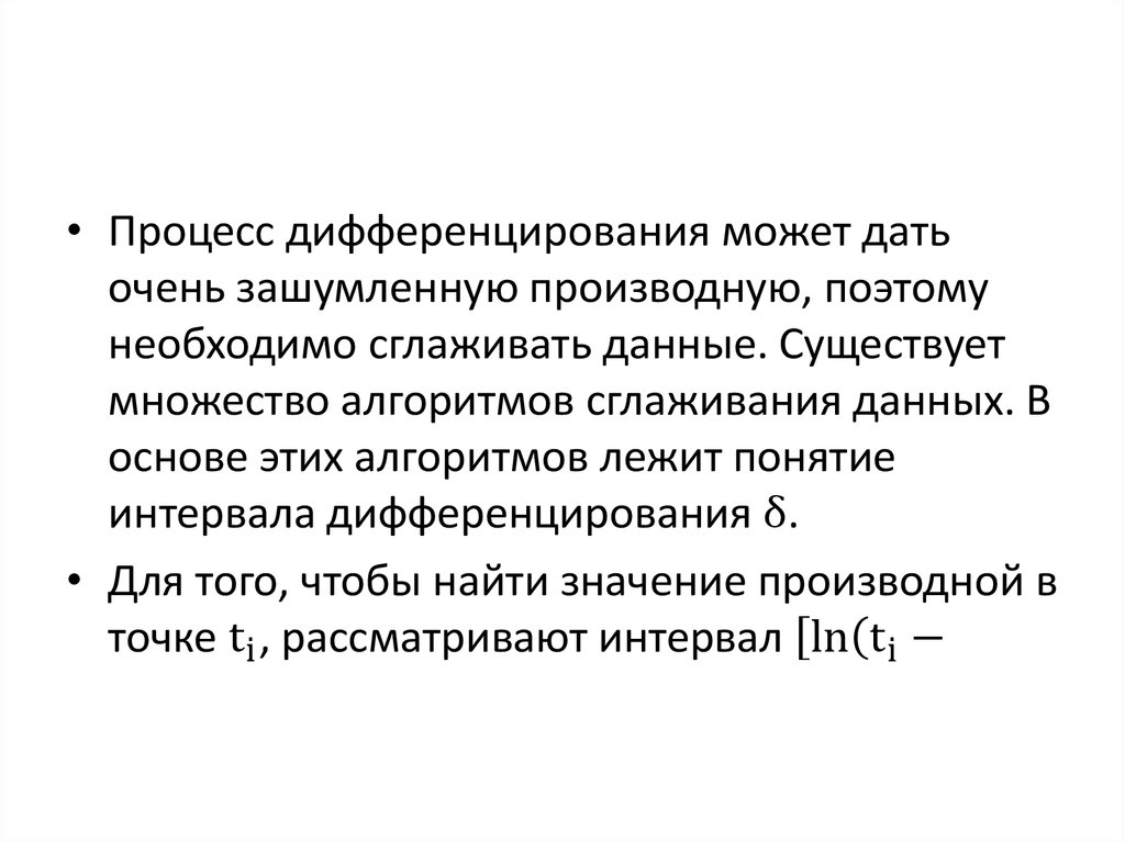 в интервал ln t i − δ ; ln t i + δ . В данном случае производная