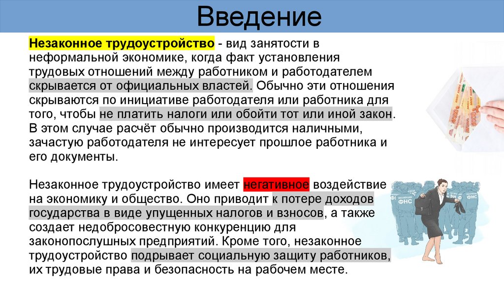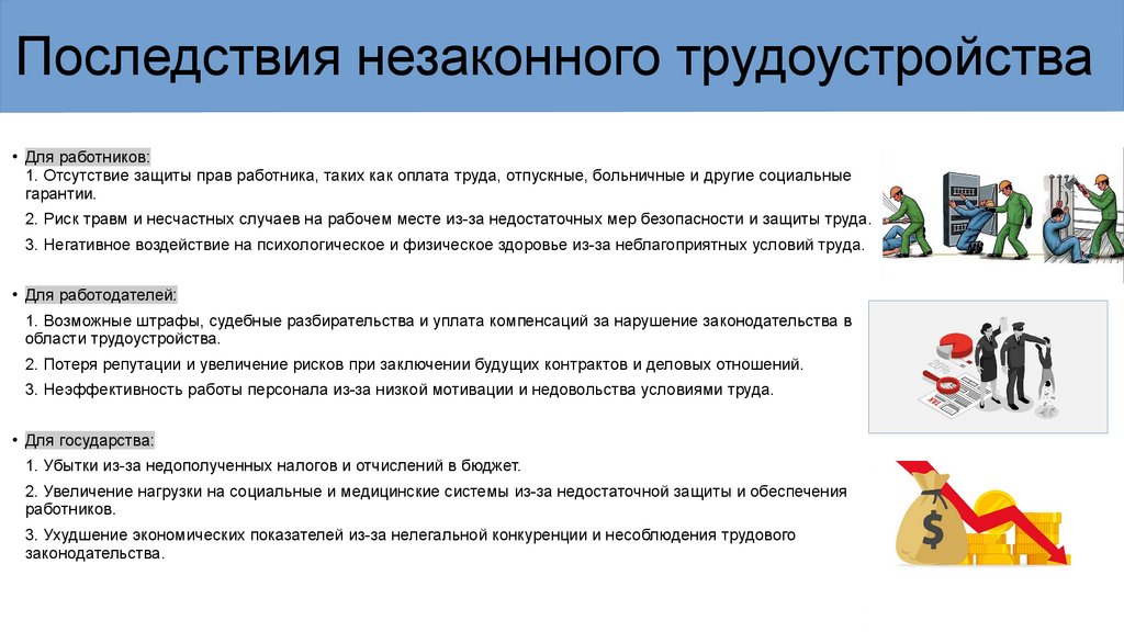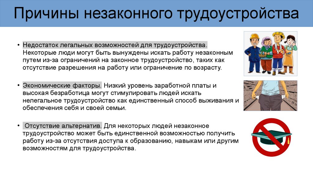 Причины незаконного трудоустройстваНедостаток легальных возможностей для трудоустройства.
