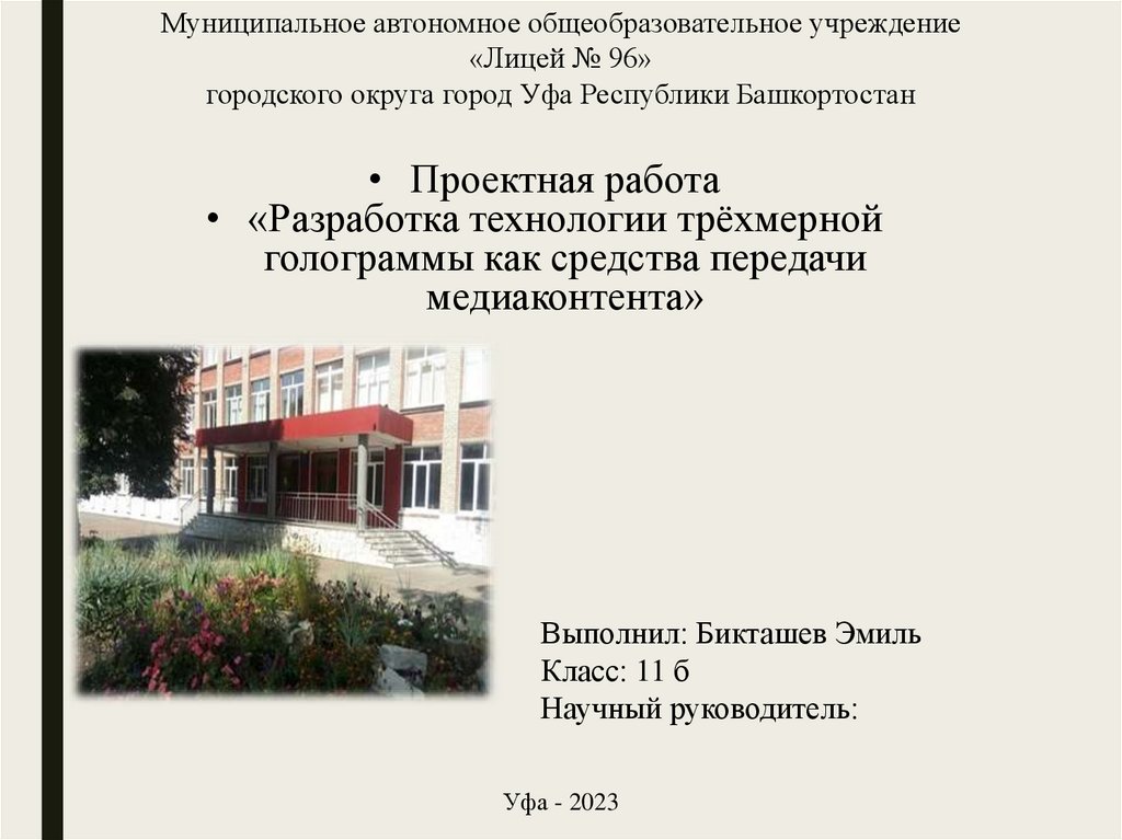 Разработка технологии трёхмерной голограммы как средства передачи медиаконтента