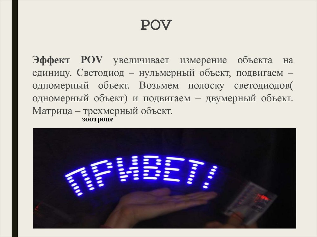 Для создания голограммы с использованием эффекта POVнеобходима матрица и устройство для движения этой