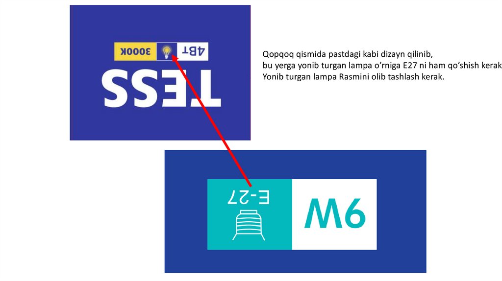 Qopqoq qismida pastdagi kabi dizayn qilinib,bu yerga yonib turgan lampa o’rniga E27 ni ham qo’shish kerak