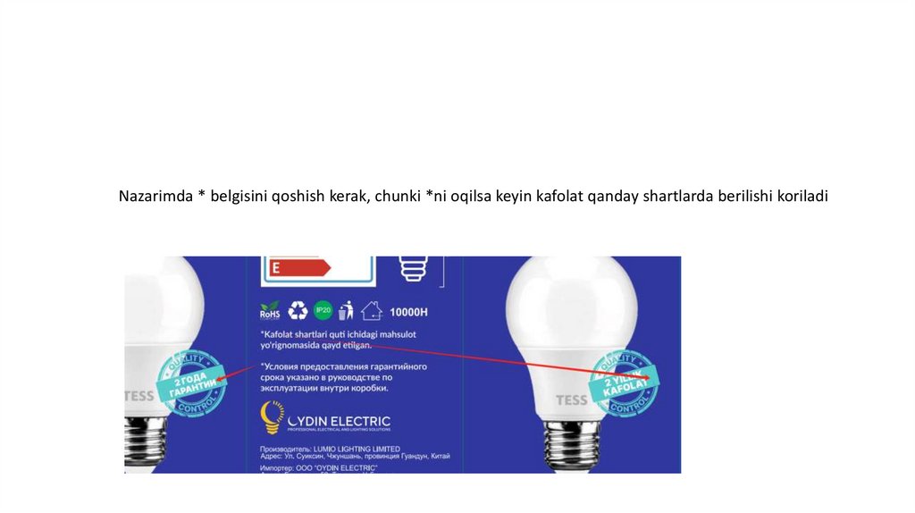 Nazarimda * belgisini qoshish kerak, chunki *ni oqilsa keyin kafolat qanday shartlarda berilishi koriladi7.