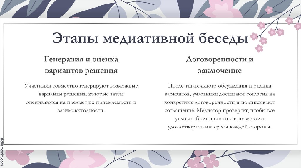 Этапы медиативной беседыГенерация и оценка