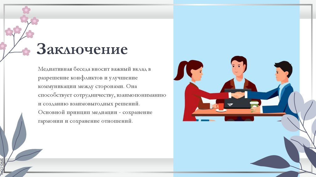 ЗаключениеМедиативная беседа вносит важный вклад в