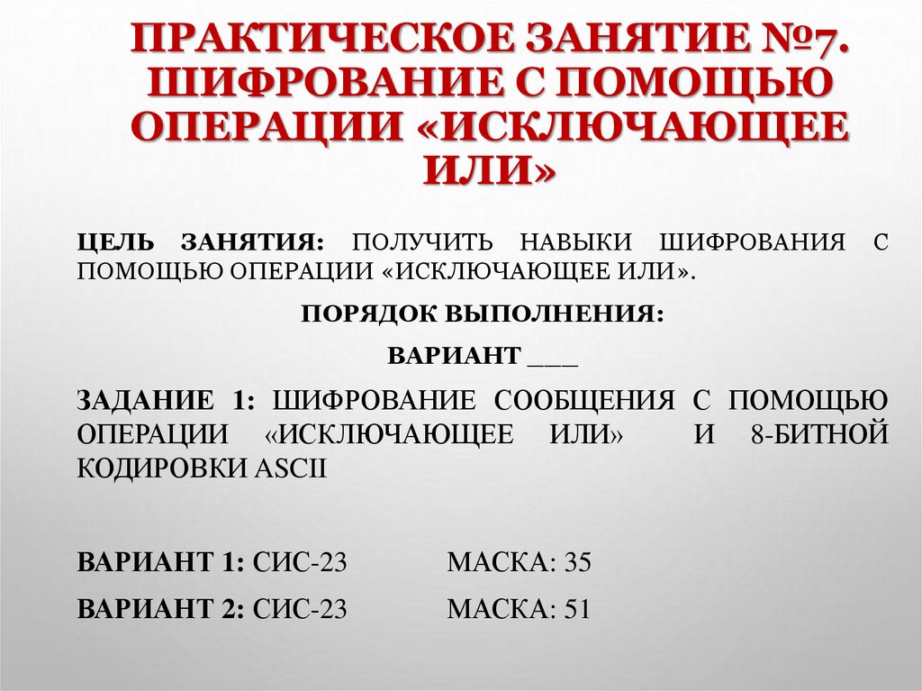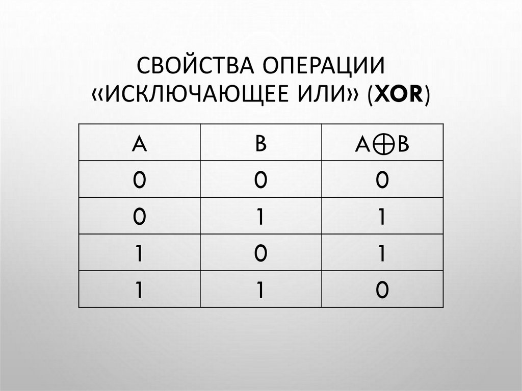 ОПЕРАЦИИ «ИСКЛЮЧАЮЩЕЕ ИЛИ»