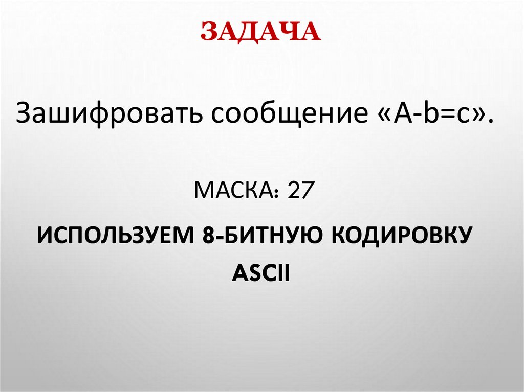 ЗАДАЧАЗашифровать сообщение «A-b=c».
