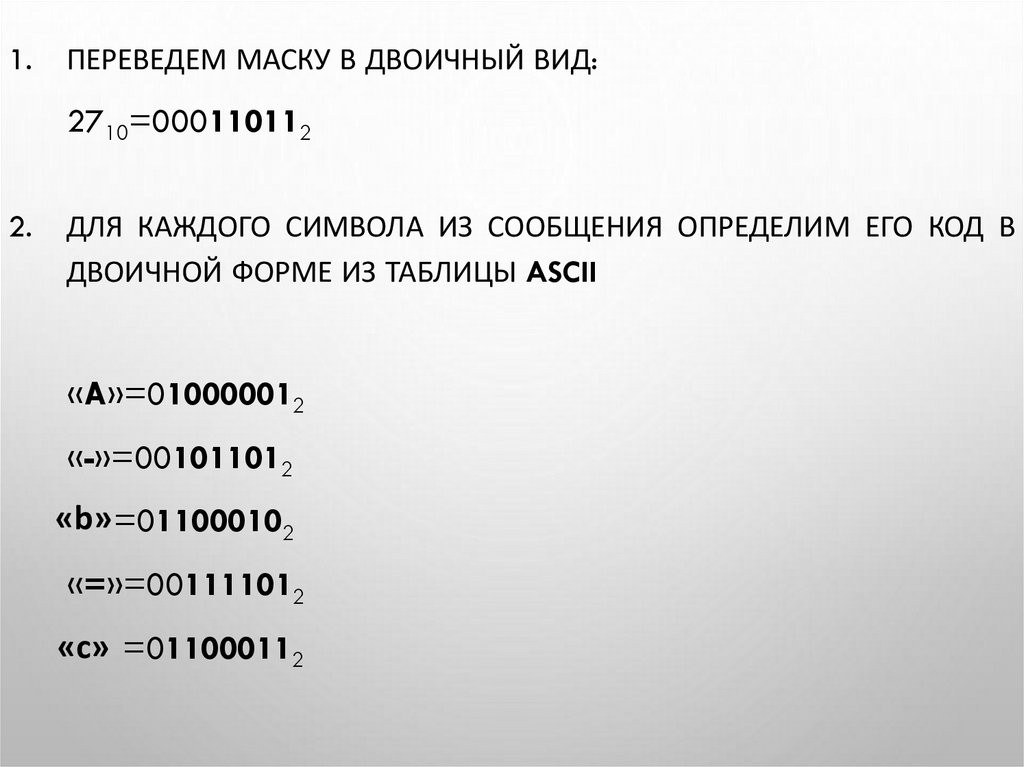 1.ПЕРЕВЕДЕМ МАСКУ В ДВОИЧНЫЙ ВИД: