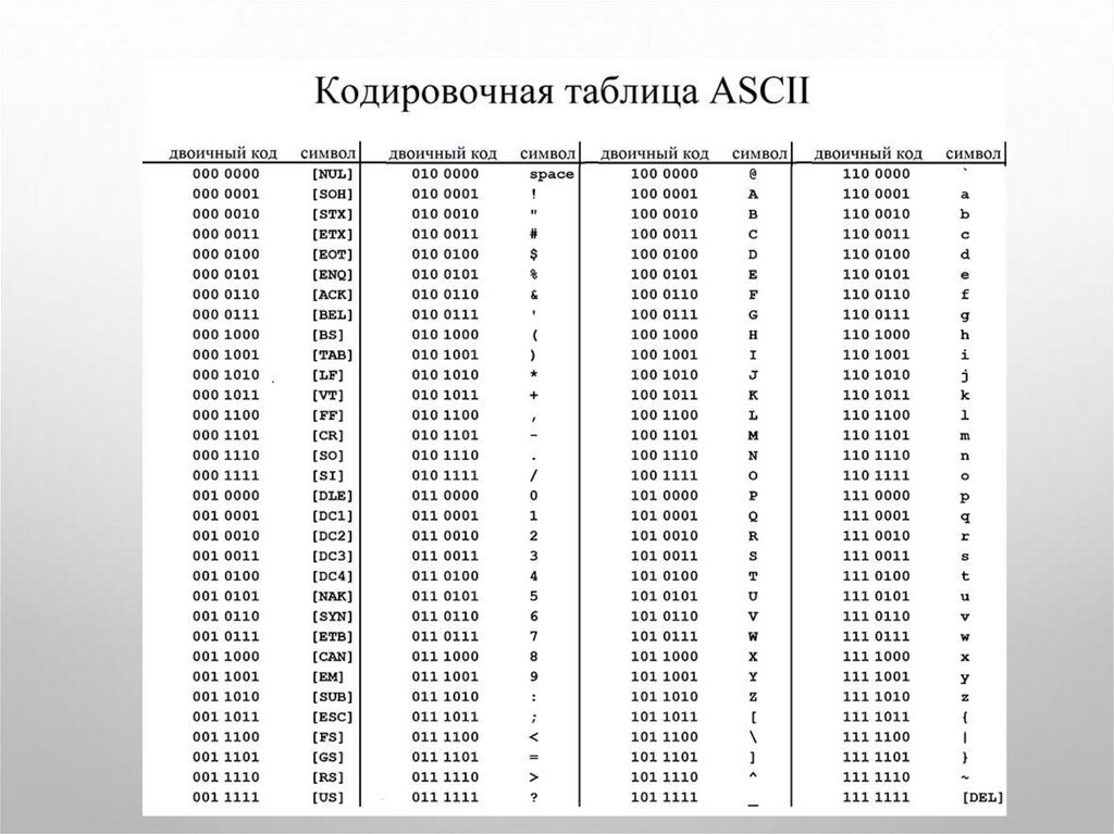 ДВОИЧНОЙ ФОРМЕ ИЗ ТАБЛИЦЫ ASCII