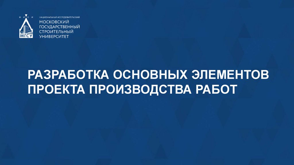 РАЗРАБОТКА ОСНОВНЫХ ЭЛЕМЕНТОВПРОЕКТА ПРОИЗВОДСТВА РАБОТ