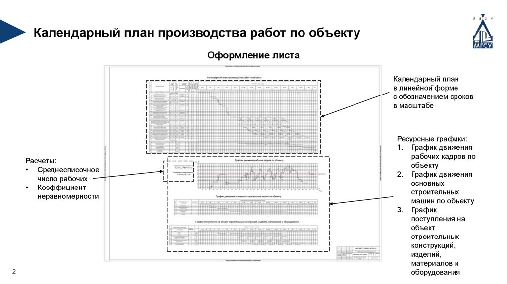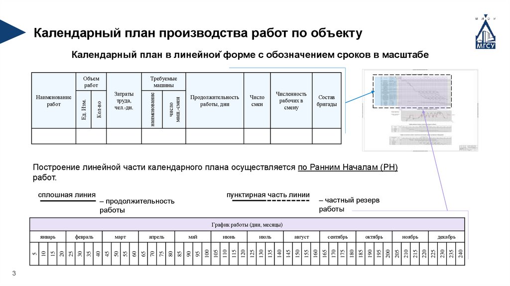 Календарный план производства работ по объектуКалендарный план в линейной форме с обозначением сроков в масштабе