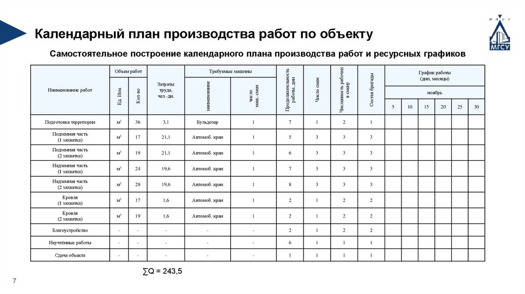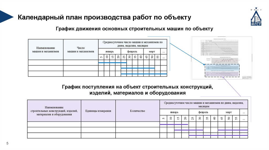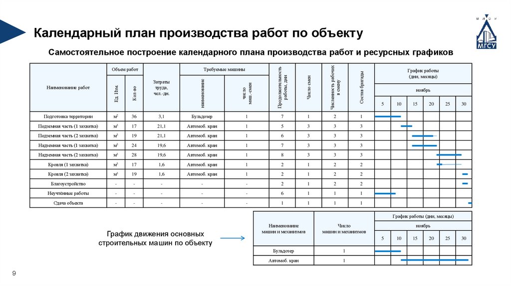 Календарный план производства работ по объектуГрафик движения основных строительных машин по объекту