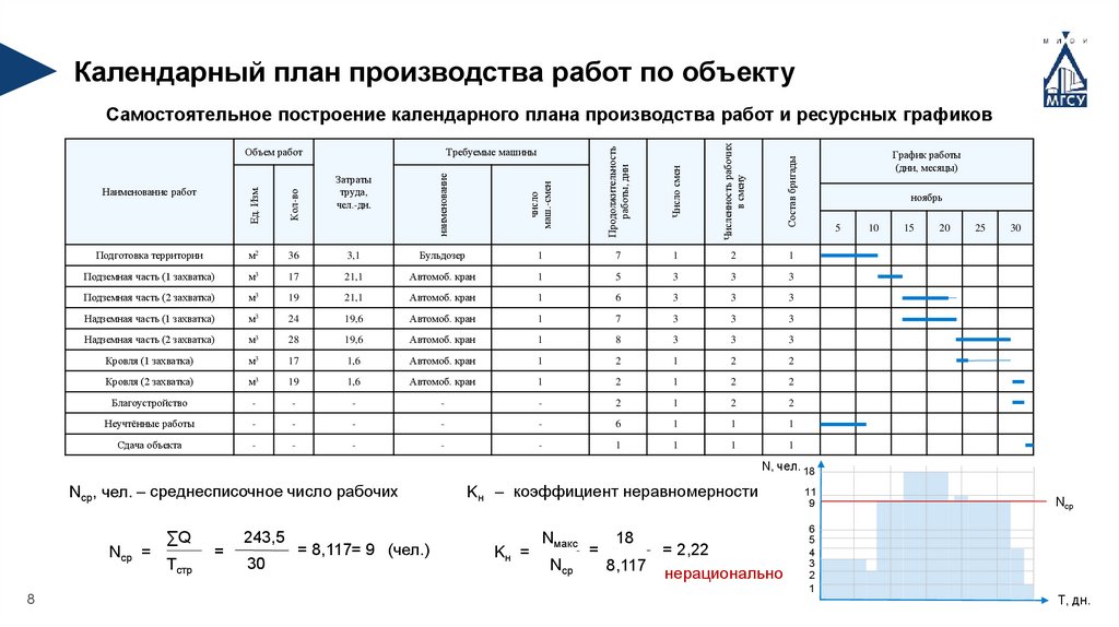 Самостоятельное построение календарного плана производства работ и ресурсных графиков