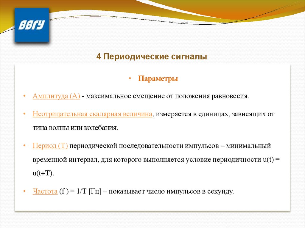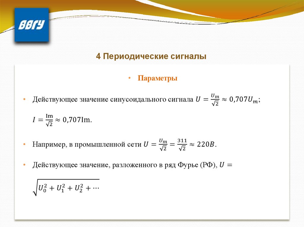 4 Периодические сигналы• Параметры
