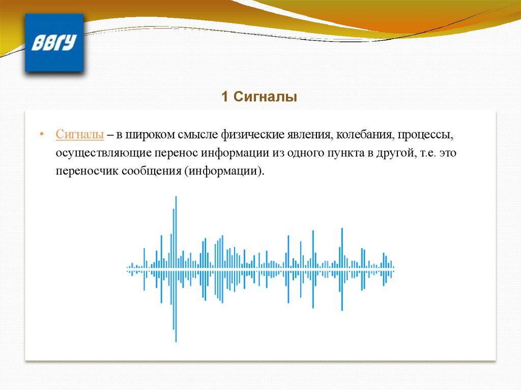 1 Сигналы• Сигналы – в широком смысле физические явления, колебания, процессы,