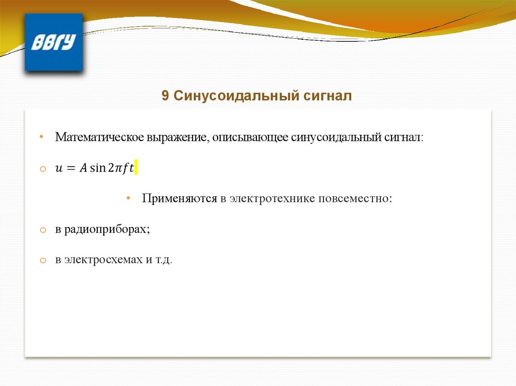 9 Синусоидальный сигнал.