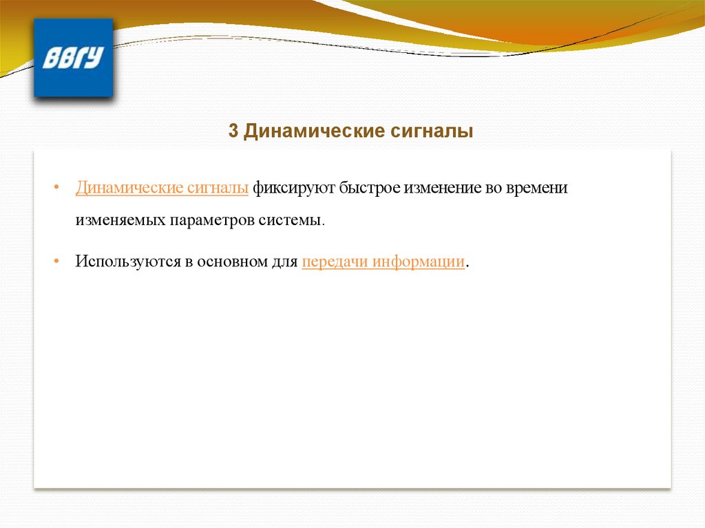 3 Динамические сигналы• Динамические сигналы фиксируют быстрое изменение во времени