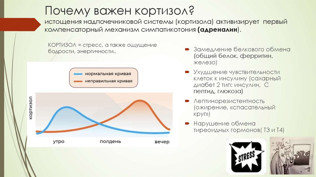 Почему важен кортизол?истощения надпочечниковой системы (кортизола) активизирует первый