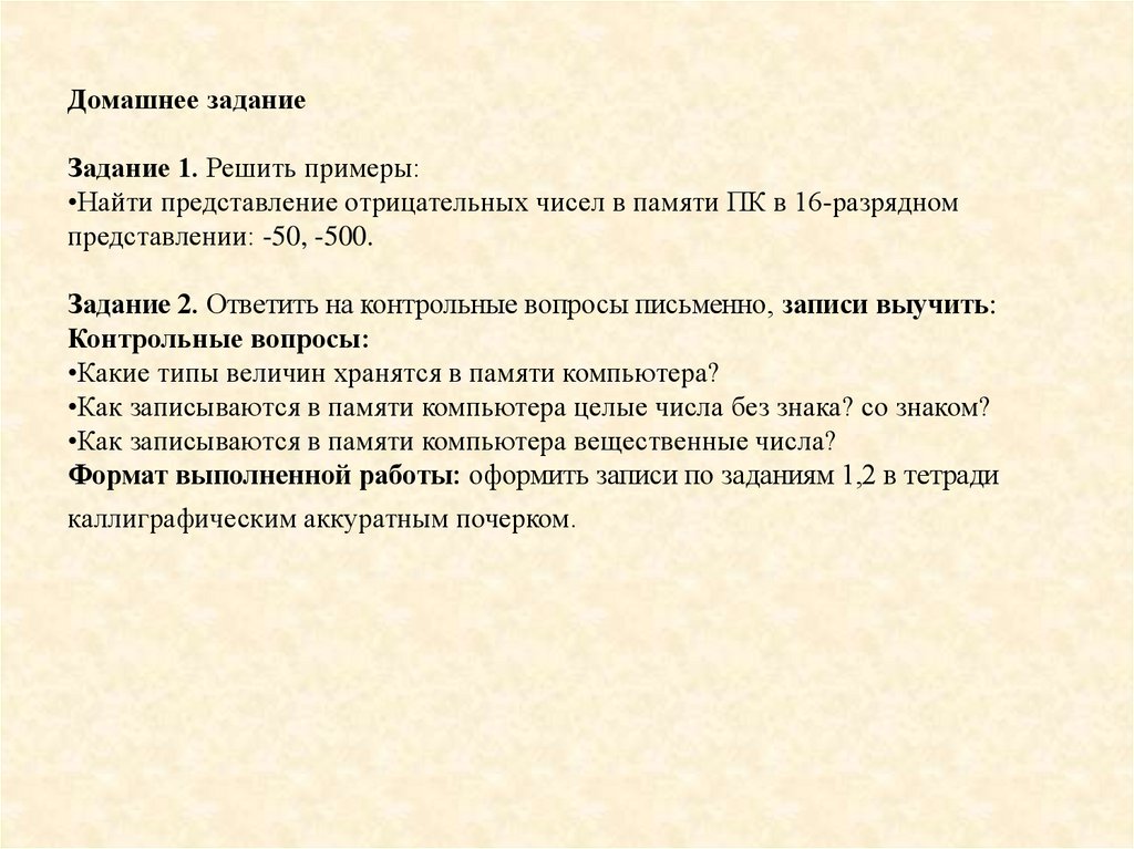 •Найти представление отрицательных чисел в памяти ПК в 16-разрядном