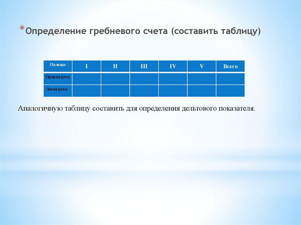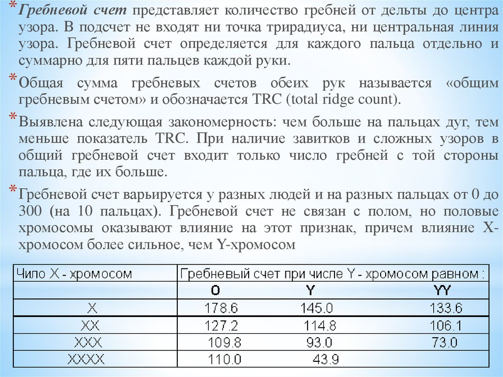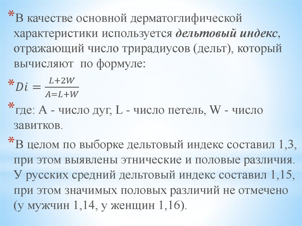 *В качестве основной дерматоглифическойхарактеристики используется дельтовый индекс,