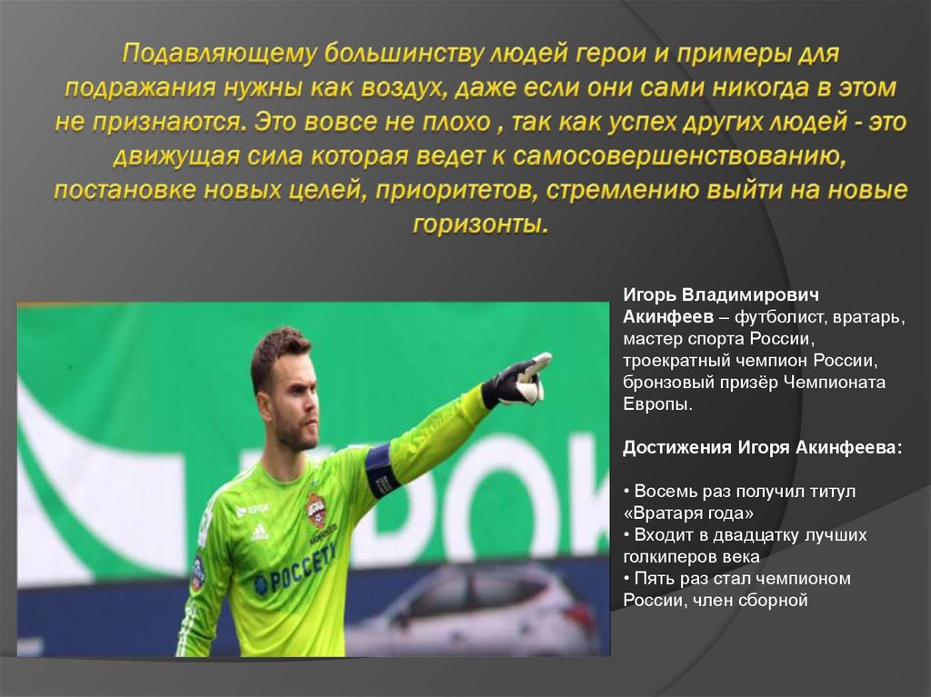 Игорь ВладимировичАкинфеев – футболист, вратарь,