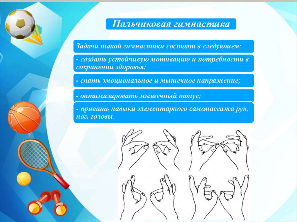 Пальчиковая гимнастикаЗадачи такой гимнастики состоят в следующем:
