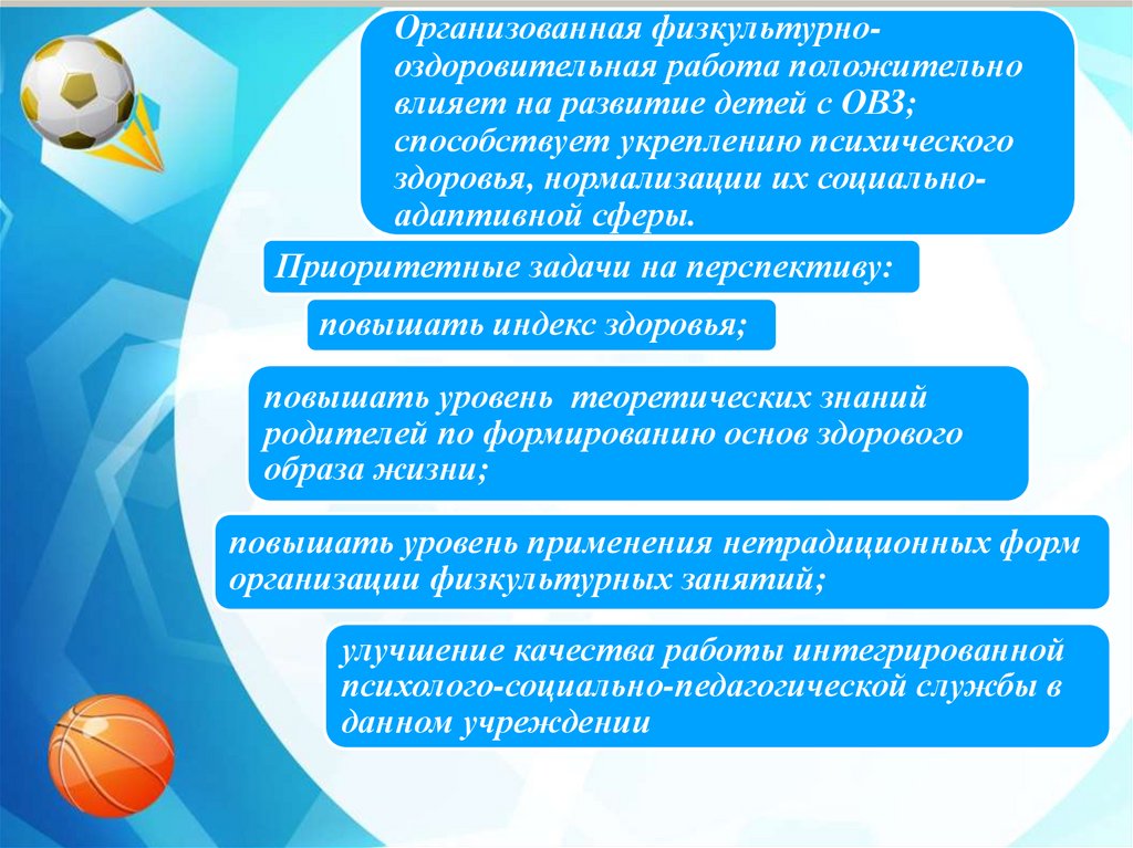 Организованная физкультурнооздоровительная работа положительновлияет на развитие детей с ОВЗ;