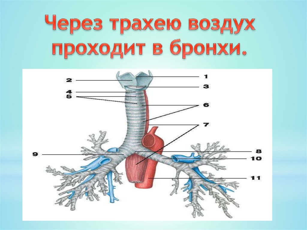 Трахея – трубка длиной 10 – 12 смХрящевые полукольца
