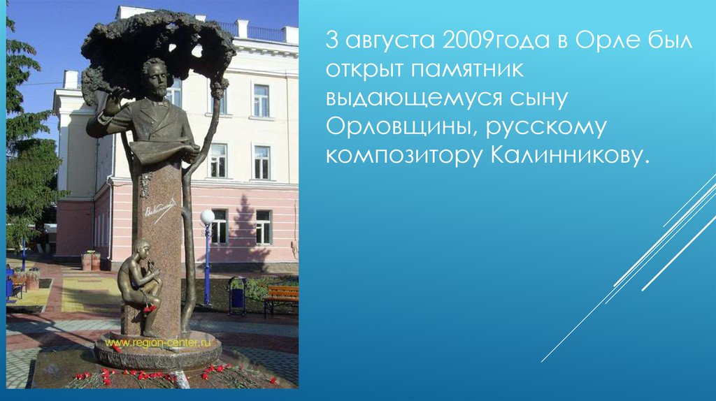 Либретто. Памятник выдающемуся сыну Орловщины, русскому композитору Калинникову