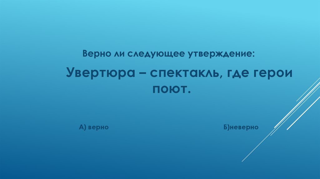 Верно ли следующее утверждение:Увертюра – спектакль, где герои