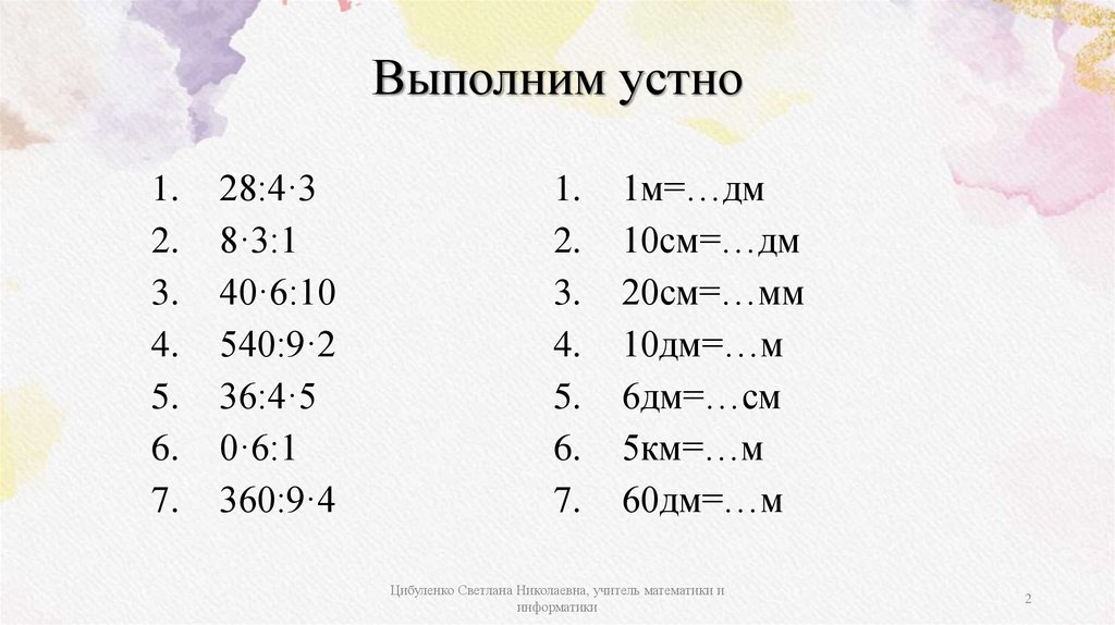 Выполним устно1.