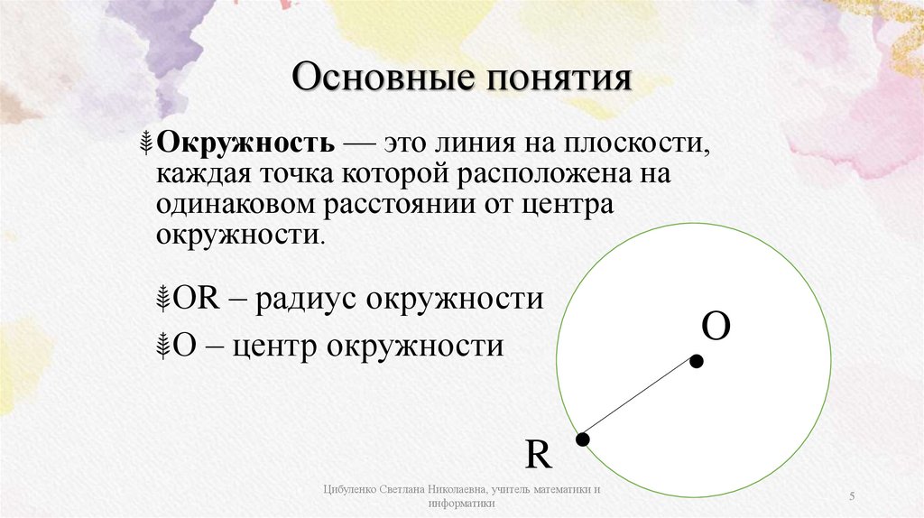 Основные понятия⸙Окружность — это линия на плоскости,