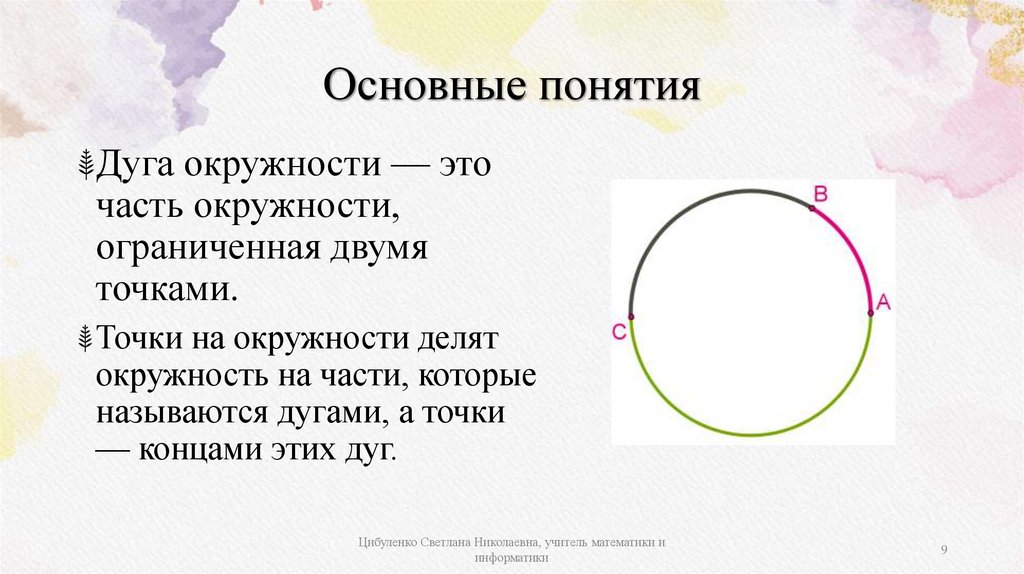 Основные понятия⸙Дуга окружности — это