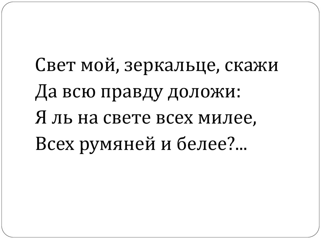 Свет мой, зеркальце, скажиДа всю правду доложи: