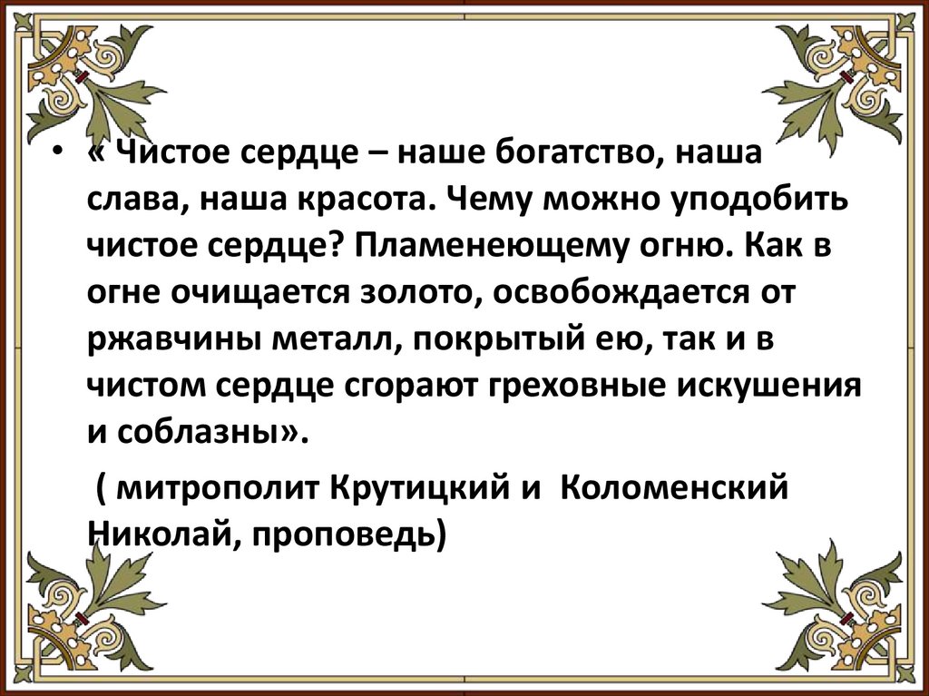 • « Чистое сердце – наше богатство, нашаслава, наша красота. Чему можно уподобить