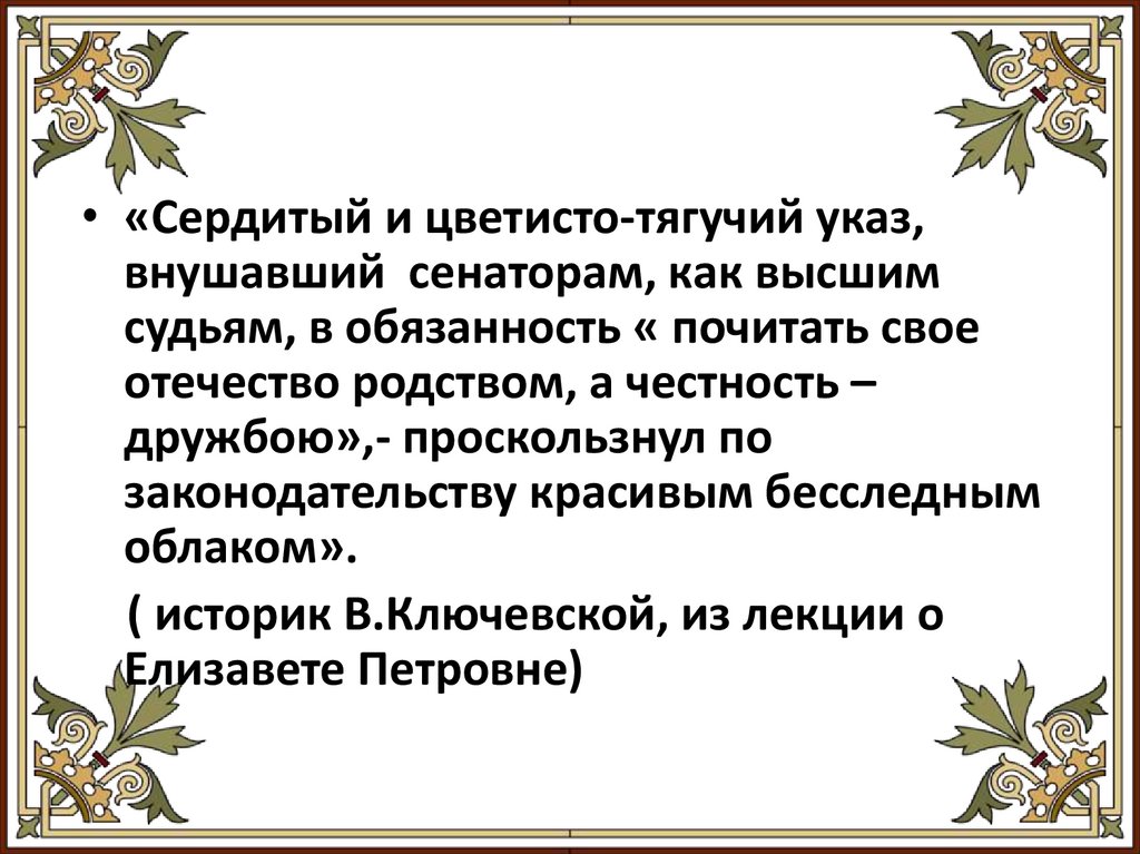 • «Сердитый и цветисто-тягучий указ,внушавший сенаторам, как высшим