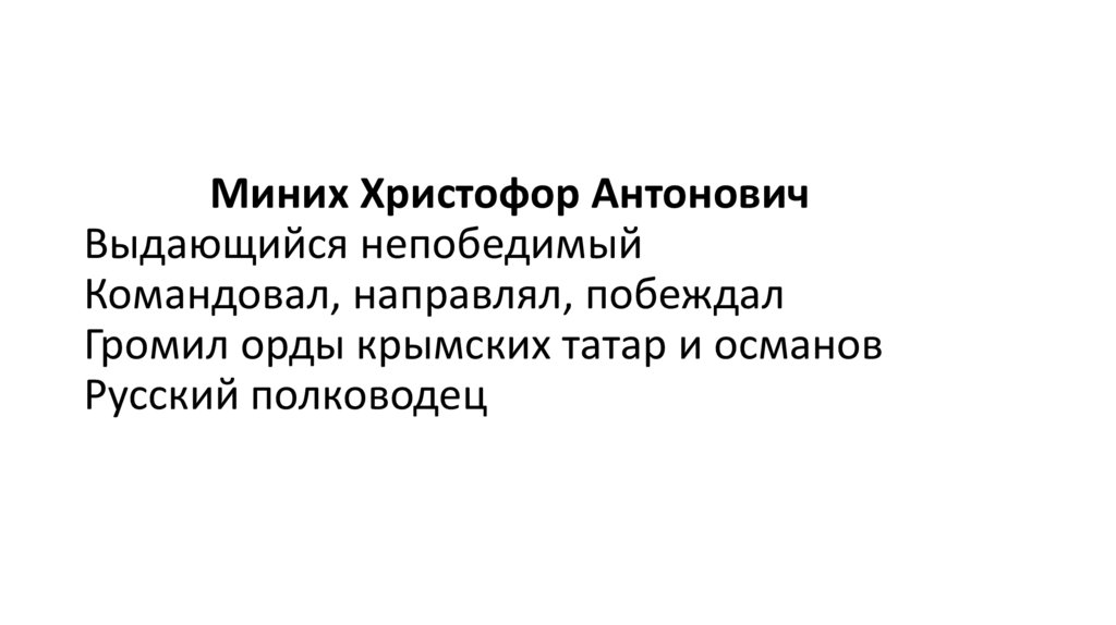 Миних Христофор АнтоновичВыдающийся непобедимый