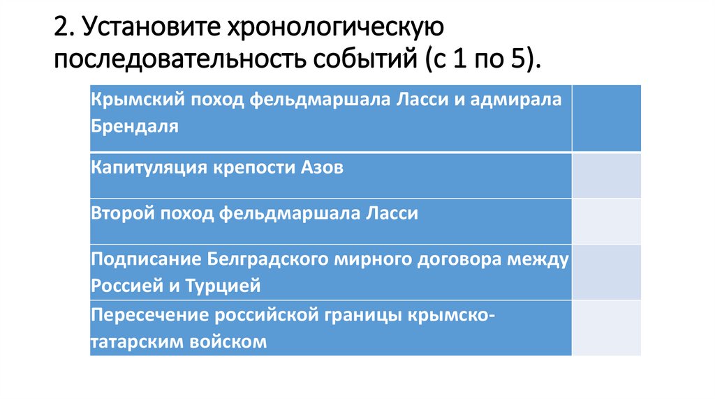 2. Установите хронологическуюпоследовательность событий (с 1 по 5).