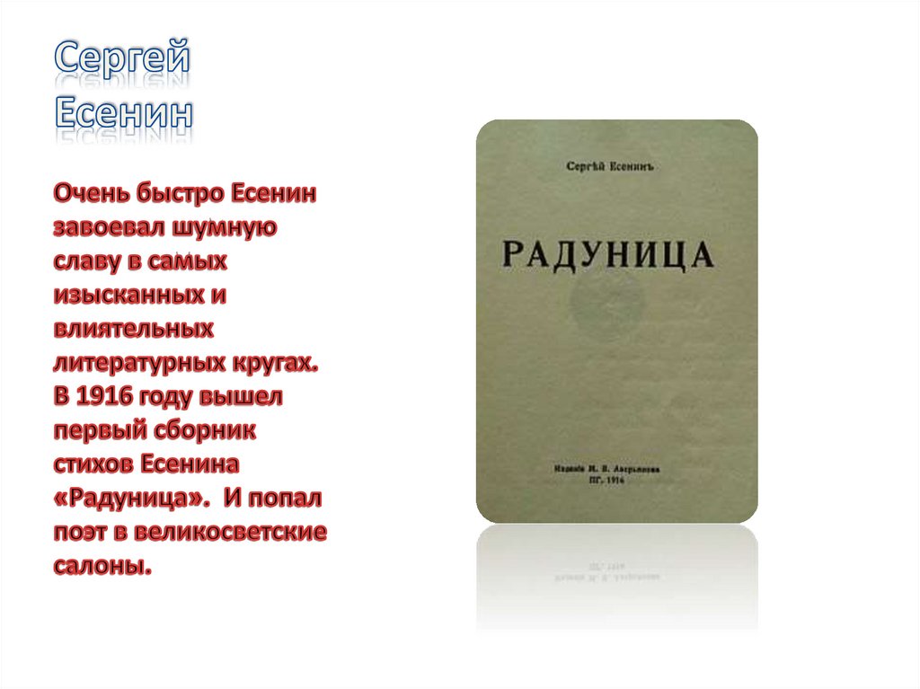 Сергей Есенин (1895 – 1925гг.). 125 лет со Дня рождения