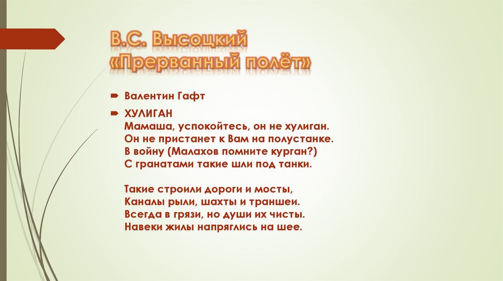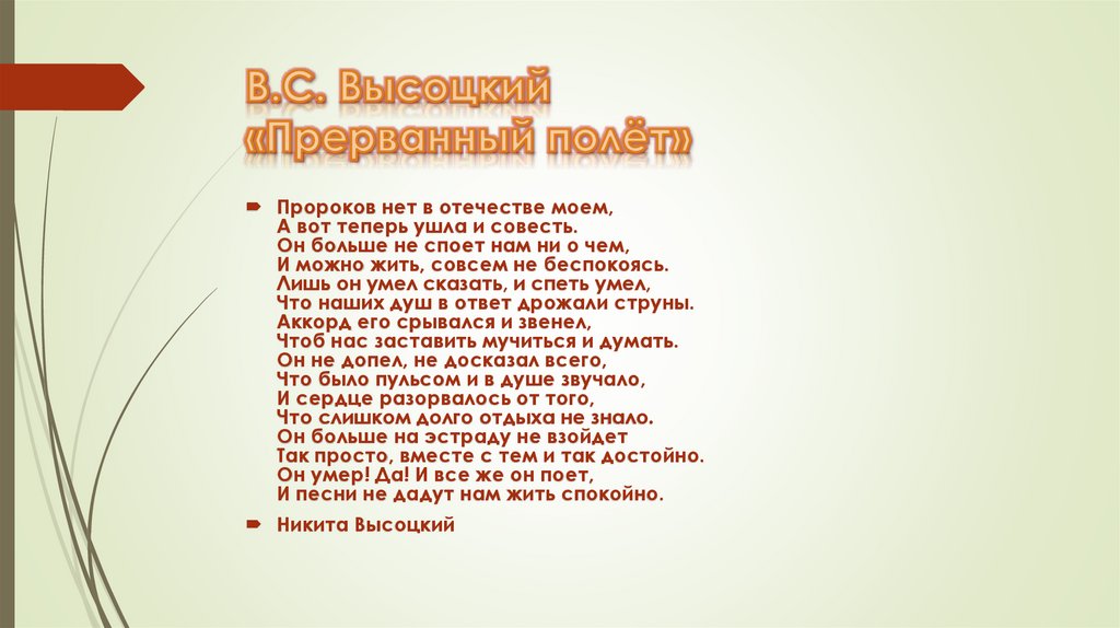 Владимир Семёнович Высоцкий «Прерванный полёт»