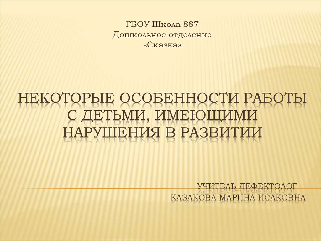 Некоторые особенности работы с детьми, имеющими нарушения в развитии